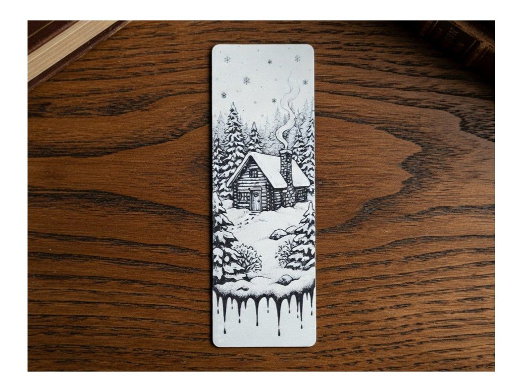 Vychutnejte si atmosféru naprostého klidu a hřejivého domova pokaždé, když se díky této záložce vrátíte ke své oblíbené knize. Detailní scéna zachycuje zasněženou horskou chatu, ze které stoupá dým z komína, obklopenou hlubokými lesy a padajícími vločkami. Spodní okraj záložky zdobí stylový prvek připomínající stékající vodu nebo tající led, což celé kompozici dodává moderní a umělecký šmrnc. Díky technologii 3D tisku scéna získává hloubku, díky které máte pocit, že se díváte na malý zimní svět přímo ve vašich dlaních.
