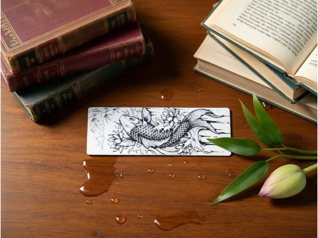 Dopřejte své knize dotek východní symboliky a nechte se inspirovat vytrvalostí Koi kapra při každém dalším otevření rozečtené kapitoly. Tento precizně zpracovaný kousek zachycuje dynamický pohyb ryby v divokých vlnách, který doplňuje klidná krása lotosových květů a bambusové větvičky v pozadí. Černobílé provedení s vysokým detailem připomíná tradiční asijské tetování nebo malbu tuší, což ze záložky dělá nejen praktickou pomůcku, ale i stylový designový doplněk pro každého vášnivého čtenáře.