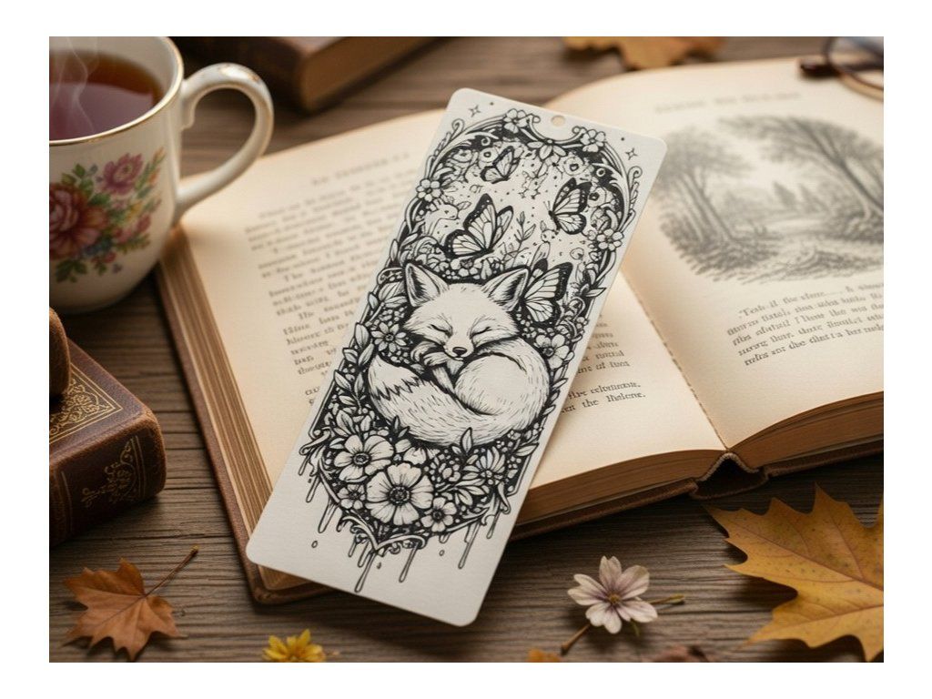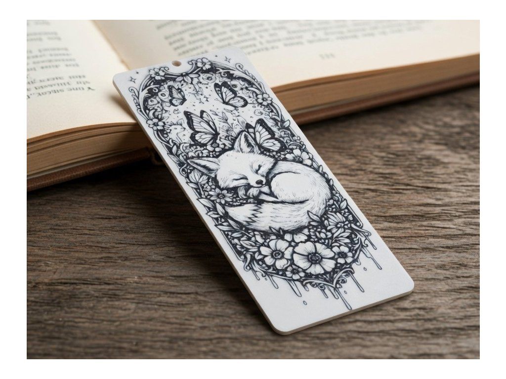 Dopřejte svému čtení dotek lesní pohádky a nechte se ukolébat klidným spánkem této roztomilé lišky pokaždé, když otevřete svou knihu. Tato precizně zpracovaná záložka zachycuje spící lišku stočenou v klubíčku, která je obklopena bohatým věncem rozkvetlých květin a poletujícími motýly. Celý motiv je laděn do vysokého kontrastu černé a bílé, což mu dodává umělecký nádech připomínající klasickou perokresbu. Díky preciznímu 3D tisku získává květinový rám i liška hloubku a plasticitu, která vás okouzlí dřív, než začnete číst první řádky kapitoly.